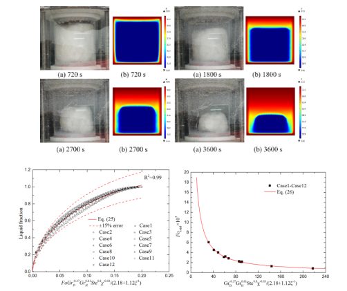 该文章主要论述了将相变材料封装后应用于工业与民用能源系统的储热水箱,其不仅能提高储放热性能,还可提高能源系统整体能源利用效率。然而,当相变蓄热单元处于水箱内时,相变材料在储热过程中发生无约束熔化。这种熔化方式相比于约束熔化更为复杂,导致现有常规的待定系数法无法准确建立储热水箱内相变储热单元的设计关联式。针对这一问题,严中俊博士团队提出一种逐步回归消除的设计关联式建立方法,并以圆柱形相变蓄热单元为例进行了研究和分析。该方法将为工业与民用能源系统相变材料利用的深入探索和实施开辟新的视野,从而促进太阳能、工业余热的高效利用。