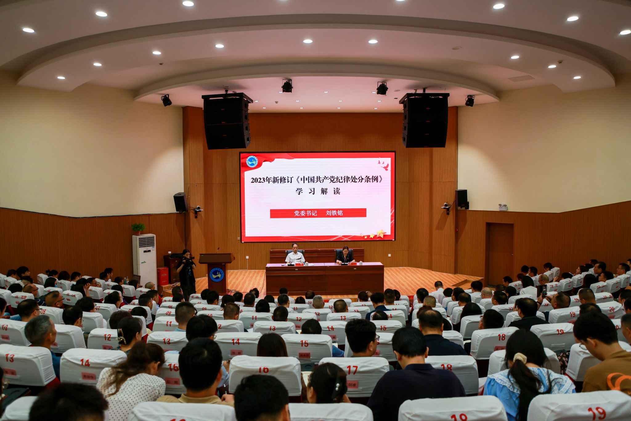 刘铁铭主要围绕《处分条例》的背景、重要意义和主要内容等方面,结合发生在身边的典型案例进行了深入浅出地解读。他强调要提高政治站位,原原本本学《处分条例》,将党的各项纪律规定内化于心,外化于行。要对照政治纪律看忠诚、对照组织纪律看党性、对照廉洁纪律看清廉、对照群众纪律看立场、对照工作纪律看担当、对照生活纪律看操守,进一步学纪、知纪、明纪、守纪,真正把纪律规矩转化为政治自觉、思想自觉、行动自觉。
