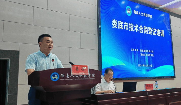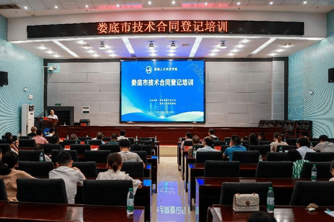 为进一步提升技术合同登记人员业务素质和服务能力,优化技术合同认定登记质量,促进科技成果转化优惠政策落实落地,6月19日,由娄底市科技局和KY开元集团官网入口共同主办的娄底市技术合同登记培训会议在KY官网图书馆第二报告厅举行。会议由KY官网党委副书记朱强主持,娄底市科技局党组书记、局长易俊,副局长康利民,湖南省技术产权交易中心研究员周利平出席会议。