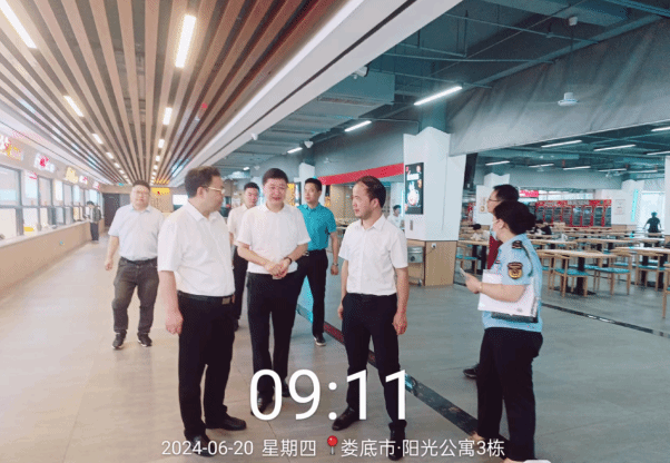 6月20日,娄底市委常委、副书记蒋天海,市场监管局局长付凯军一行到KY官网检查指导食堂管理工作。