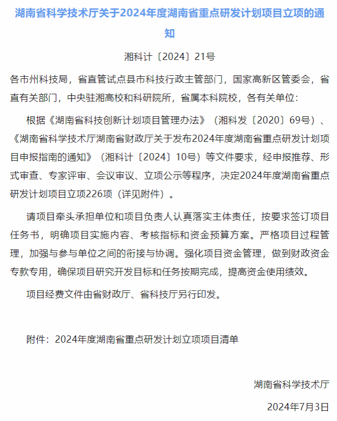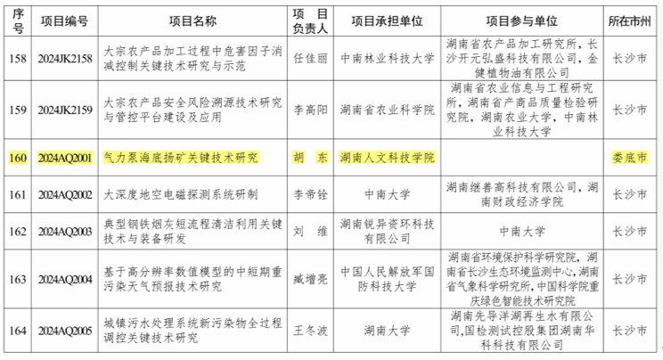 近日,湖南省科技厅发布了《关于2024年度湖南省重点研发计划项目立项的通知》,KY官网水射流团队胡东教授牵头申报的课题“气力泵海底扬矿关键技术研究”(项目编号:2024AQ2001)获立项资助。