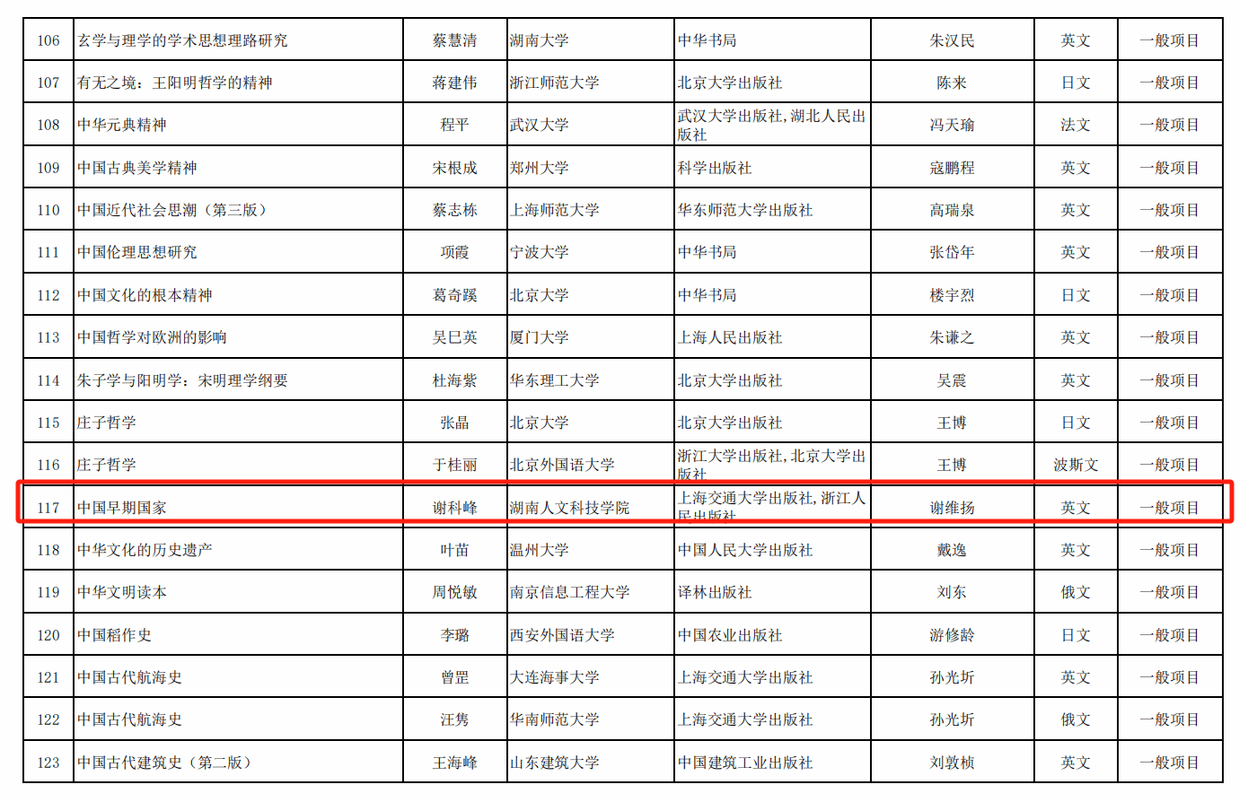 日前,全国哲学社会科学工作办公室公布了“2023-2024年度国家社科基金中华学术外译项目”立项名单,KY官网谢科峰副教授主持的国家社会科学基金中华学术外译项目获批立项,该项目是KY官网建校以来获批立项的首个国家社科基金中华学术外译项目。