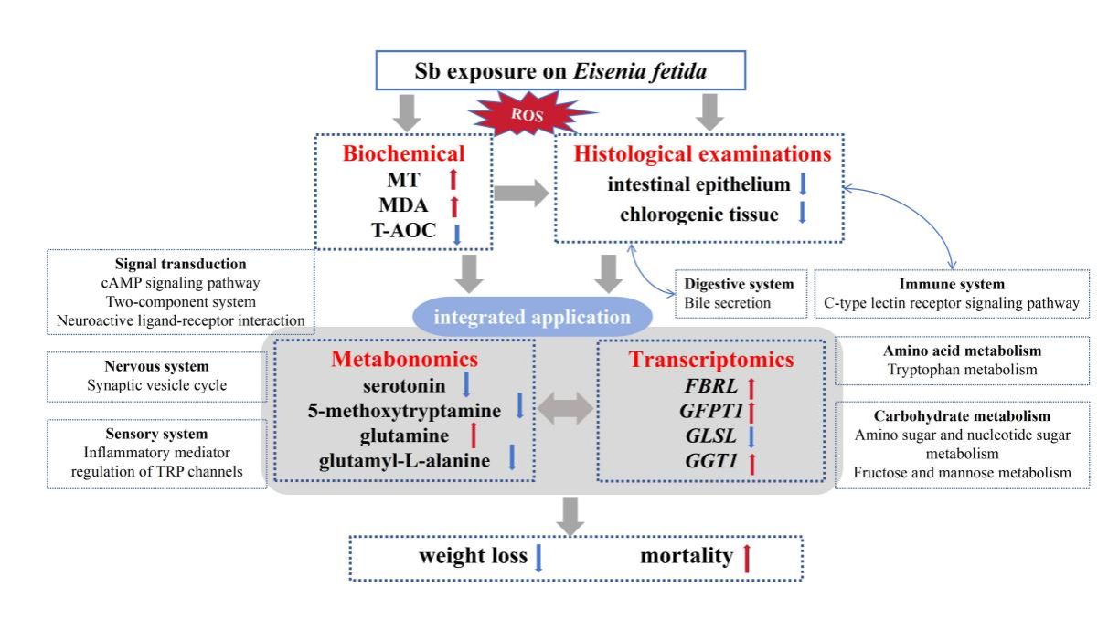 图3 E. fetida在生化、组织、代谢和转录组水平上对锑响应的概念图