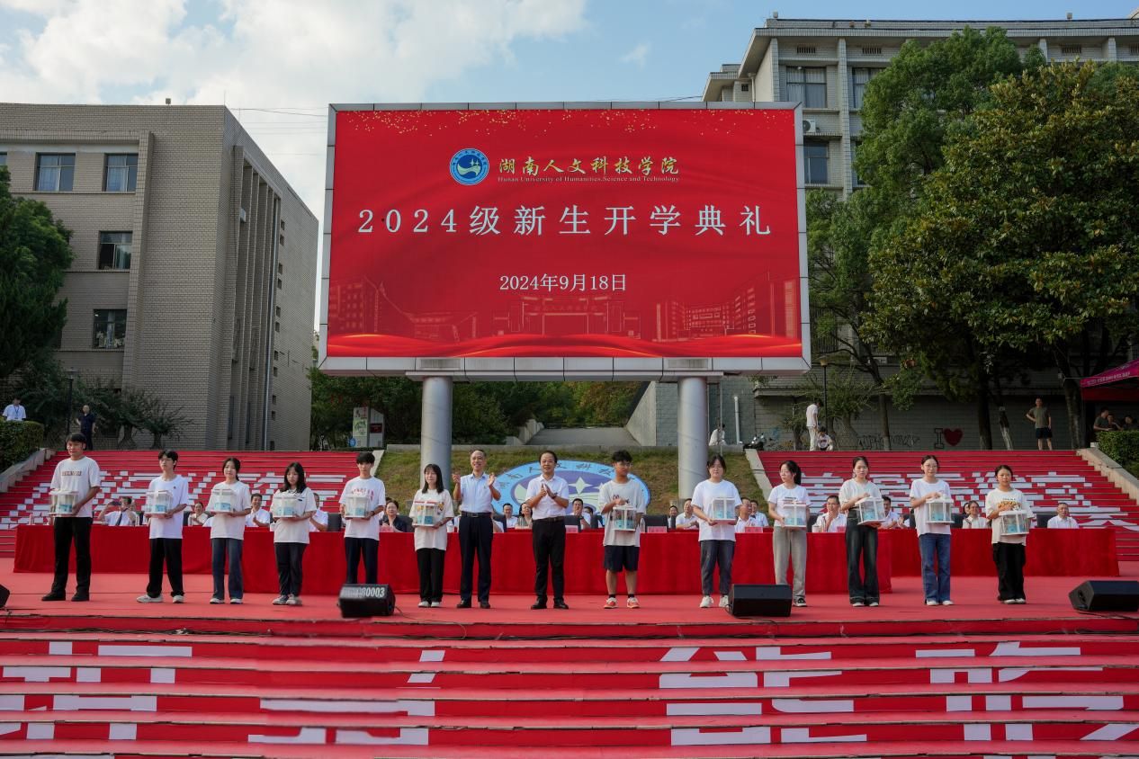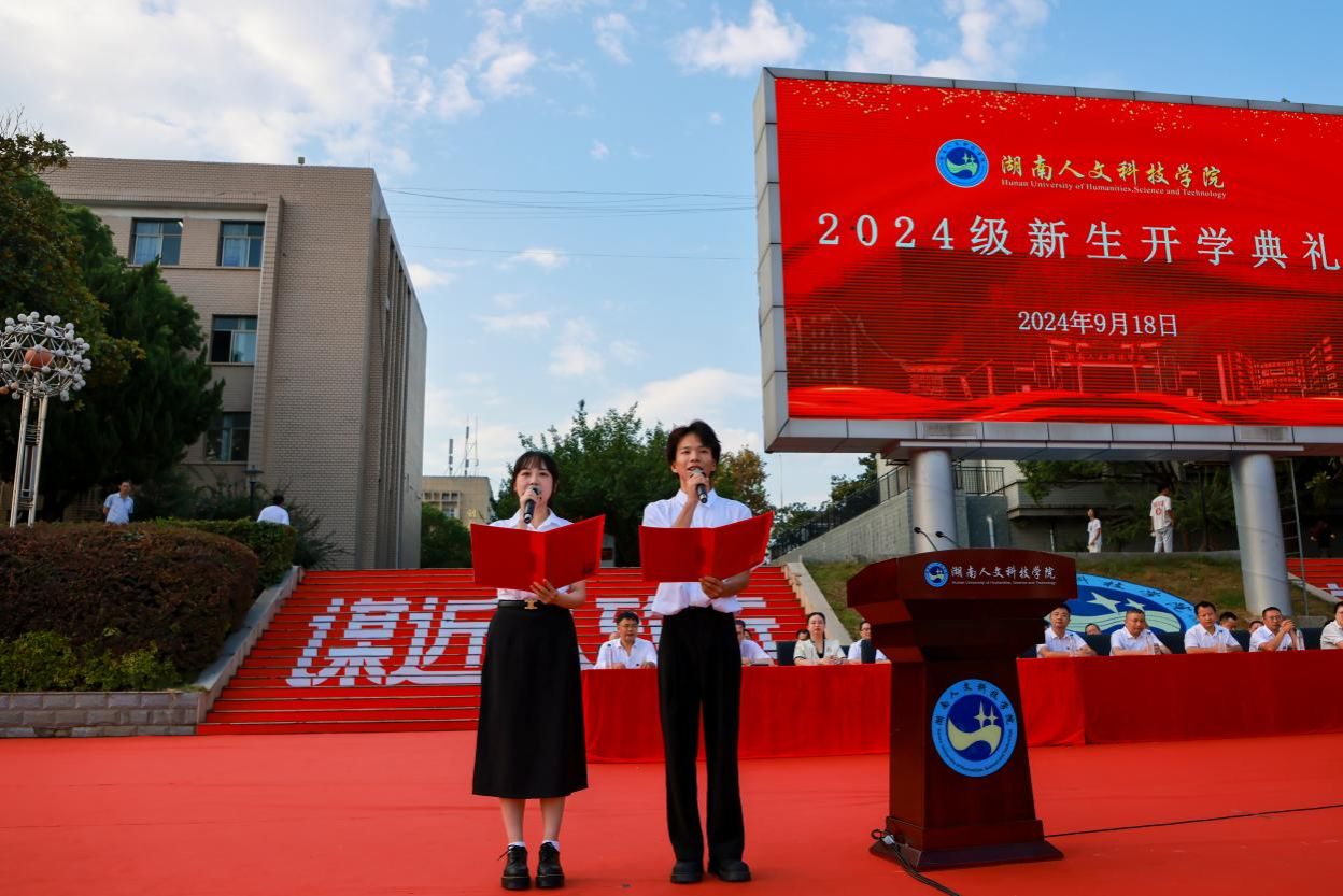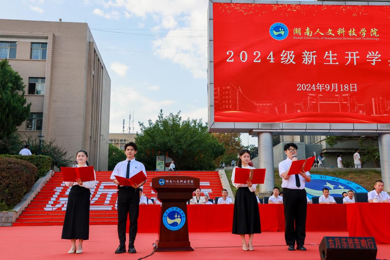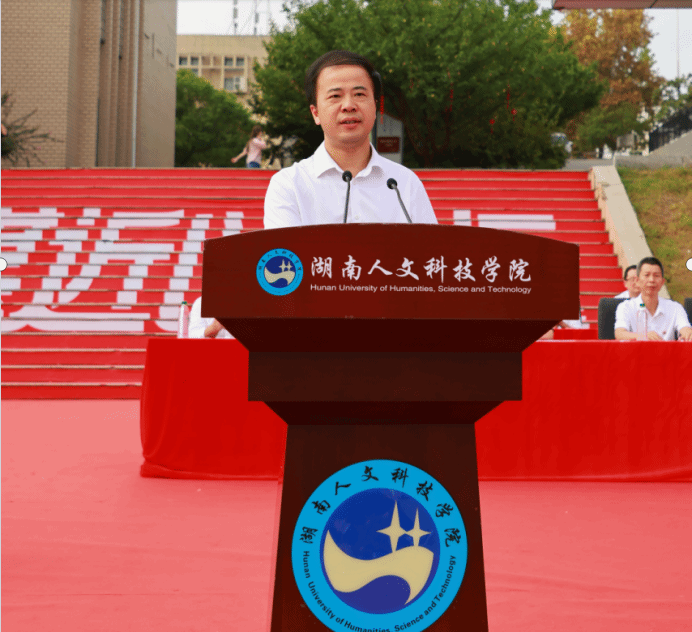 党委副书记、校长盛明科代表学校向2024级新生表示热烈欢迎,向辛勤培育学子的家长和老师致以谢意。在致辞中,盛明科回顾了学校的发展历程,介绍了学校在人才培养、学科建设、师资力量等方面的显著成就。他指出,身为人文科技学子要有志存高远,追求卓越的志气;积极进取,昂扬向上的朝气;腹有诗书气自华的才气和海纳百川、胸怀日月的大气。他希望2024级新生们尽快熟悉新环境,融入新集体,以崭新的姿态迎接精彩的大学生活。他寄语新生厚植爱国情怀,坚定报国志向,增长兴国才干,成为勇于担当民族复兴大任的时代新人。