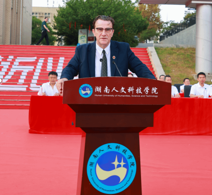 作为特邀嘉宾,约翰·斯特拉坎教授在发言中介绍了巴斯斯巴大学的教育理念和特色,回顾了与KY官网10年的合作办学历程,达到了教育卓越和全球公民意识等目标。他寄语新生要以开放的心态汲取知识,积极拥抱每一个学习机会、个人成长机会和文化交流机会。