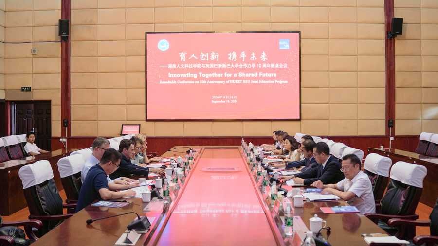 盛明科对远道而来的英国巴斯斯巴大学来访团表示欢迎。他指出,两校友好合作的十年,为学生提供了广阔学习平台和发展机遇,为学校国际化发展注入新活力。回顾十年历程,双方携手走过挑战与机遇并存之路,从理念碰撞到深度融合,见证了学生成长、学科建设和科研创新发展。展望未来,两校将进一步深化在学科建设、人才培养、科学研究等方面的合作,探索创新教育模式,拓展合作领域,加强在新兴学科和前沿领域的合作,为提升学校办学国际化水平和增进中英教育文化交流做出新的贡献。