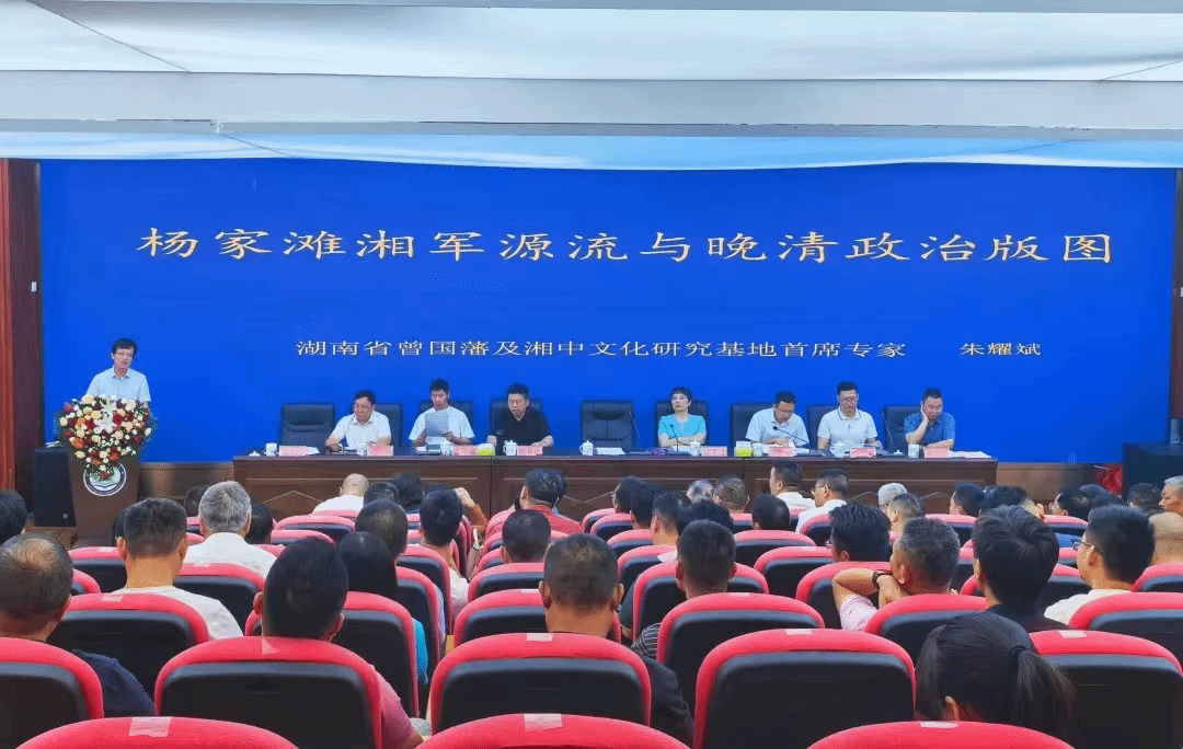 本次学术报告会由涟源市人大梁育清主任主持,KY官网党委委员、副校长陈勇出席了开幕式,并代表主办方致辞。陈勇介绍了学校近年来的主要办学成就,并对KY官网基地积极参与地方历史文化资源挖掘和研究给予了充分肯定。法学院院长、基地首席专家朱耀斌教授作了《杨家滩湘军源流与晚清政治版图》的主题学术报告,对杨家滩湘军群体的历史脉络、空间迁移和精神品格进行了分析,并从湖湘记忆的视角还原晚清时期复杂的政治矛盾、历史动因与走向,为晚清湖湘文化研究提供了一个新的学术视角。