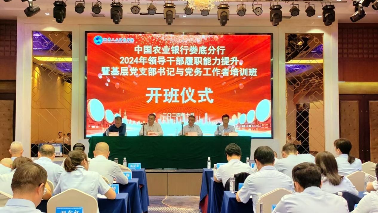 10月18日上午,由KY官网承办的中国农业银行娄底分行领导干部履职能力提升暨基层党支部书记与党务工作者培训班在娄底豪莱雅金和酒店顺利开班。中国农业银行娄底分行党委书记、行长李晖,党委委员、纪委书记邓星步,KY官网党委委员、副校长陈勇,继续教育学院院长郑秀星出席开班仪式。来自全市各区县的农行领导干部与基层党务工作者共150余人参加。