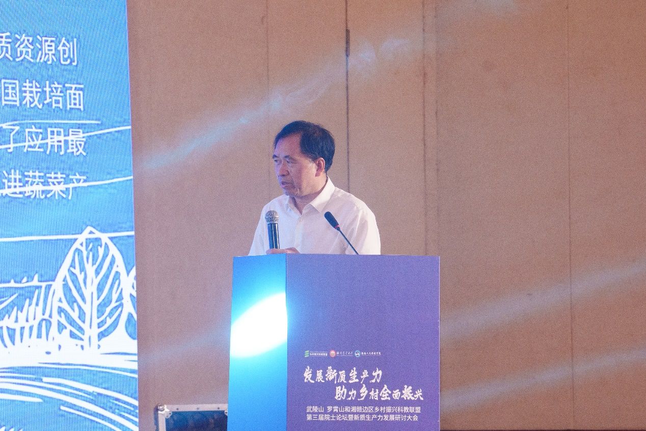 中国工程院院士、湖南农业大学校长邹学校,中国工程院院士、中央候补委员、湖南师范大学校长刘仲华,中国工程院院士、中南林业科技大学党委书记吴义强分别作题为《对中国农业的几点判断》《新质生产力与茶产业高质量发展》《科技创新助推两山一区林业产业高质量发展》的主旨报告。中国工程院院士、湖南省农业科学院党委书记柏连阳以视频的方式作《水稻单产提升的问题及对策》主旨报告。专家们分享了各自领域的最新研究成果,并就如何将这些成果转化为实际生产力,促进农业现代化和农村经济发展提出了建设性意见。