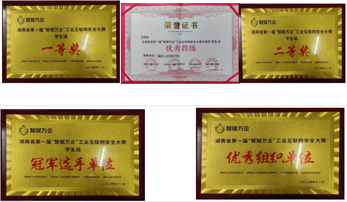 11月20日至21日,由湖南省工业和信息化厅、湖南省人力资源和社会保障厅、共青团湖南省委、湖南省通信管理局联合主办、联通(湖南)产业互联网有限公司承办的湖南省第一届“智赋万企”工业互联网安全大赛决赛暨2024年中国工业互联网安全大赛湖南省选拔赛在长沙举行,KY开元集团官网入口在66支队中脱颖而出,2支参赛队成绩位列学生组的第1名、第2名,荣获全省一等奖、全省二等奖,并将代表湖南省参加“2024年中国工业互联网安全大赛”的全国总决赛。李曾妍老师获“优秀教练奖”,KY官网获得“冠军选手单位奖”“优秀组织单位奖”。