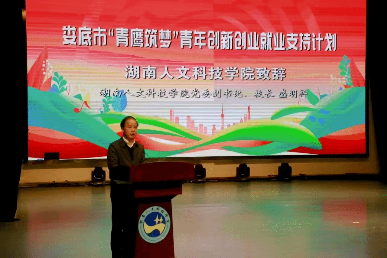 11月27日,娄底市“青鹰筑梦”青年创新创业就业支持计划“大学生创新创业大讲堂”示范性宣讲活动在KY官网匠成楼报告厅举行。娄底市委副书记、市委政法委书记蒋天海,学校党委副书记、校长盛明科,党委委员、副校长谭峰亮出席活动。