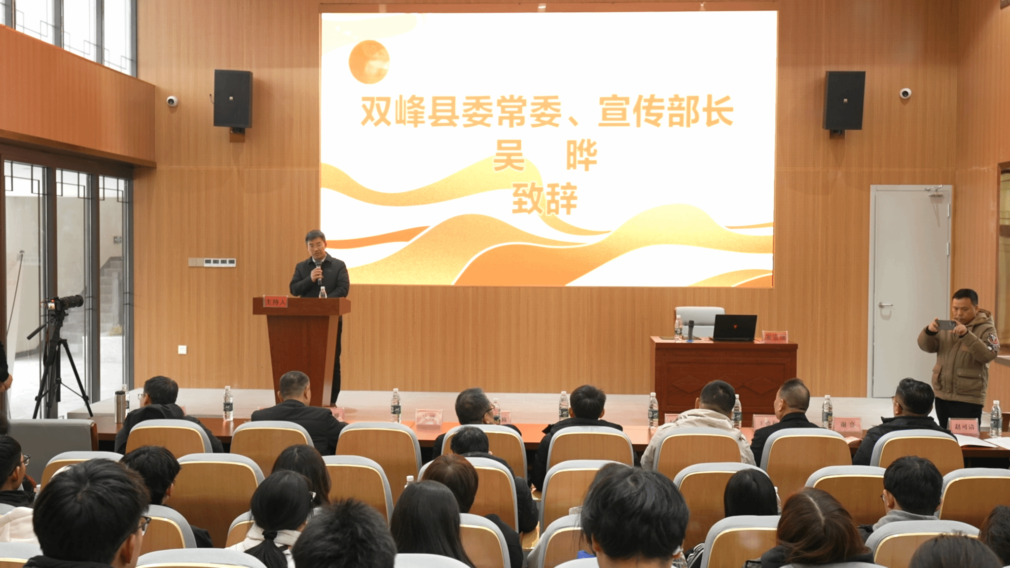 吴晔代表双峰县委、县政府致辞,欢迎KY开元集团官网入口、湖南日报社与双峰县委宣传部、井字镇人民政府共同开展创新创业活动。他介绍了双峰文化产业发展的情况,希望同学们共同参与双峰文化产业建设和乡村振兴事业。