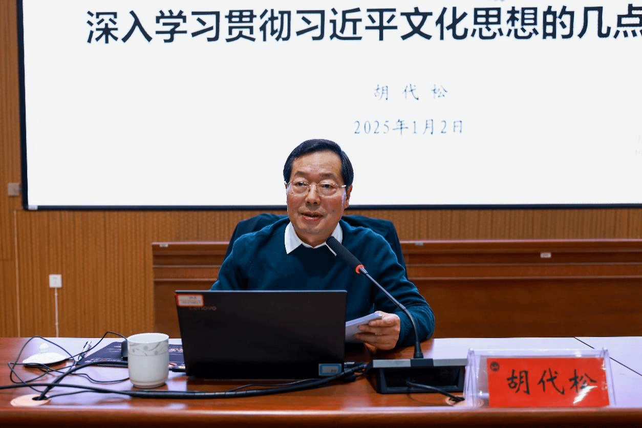 1月2日下午,湖南省社科联党组书记、副主席(主持日常工作)胡代松应邀莅临KY官网,在学校匠成楼作《深入学习贯彻习近平文化思想的几点体会》专题讲座。湖南省社科联党组秘书邹康一、全体校领导出席,党委书记刘铁铭主持。