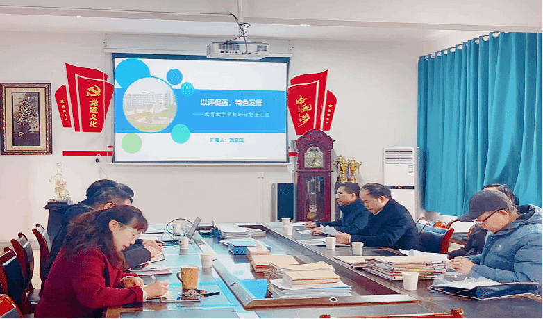 1月9日下午,校长盛明科一行专程到商学院督查指导本科教育教学审核评估工作,质量监控与发展规划处、评估办等部门负责人及有关人员陪同,商学院院领导、教研室主任、三办主任及全体教务秘书参会。