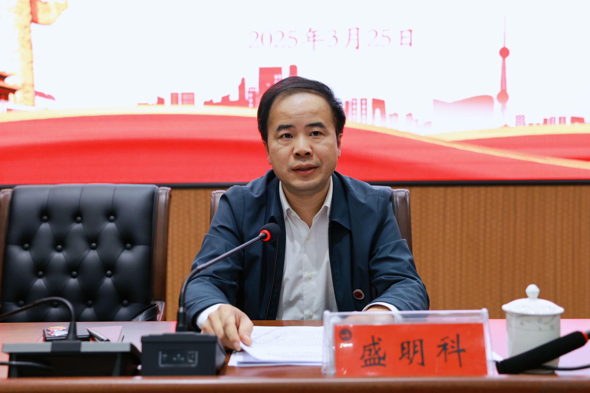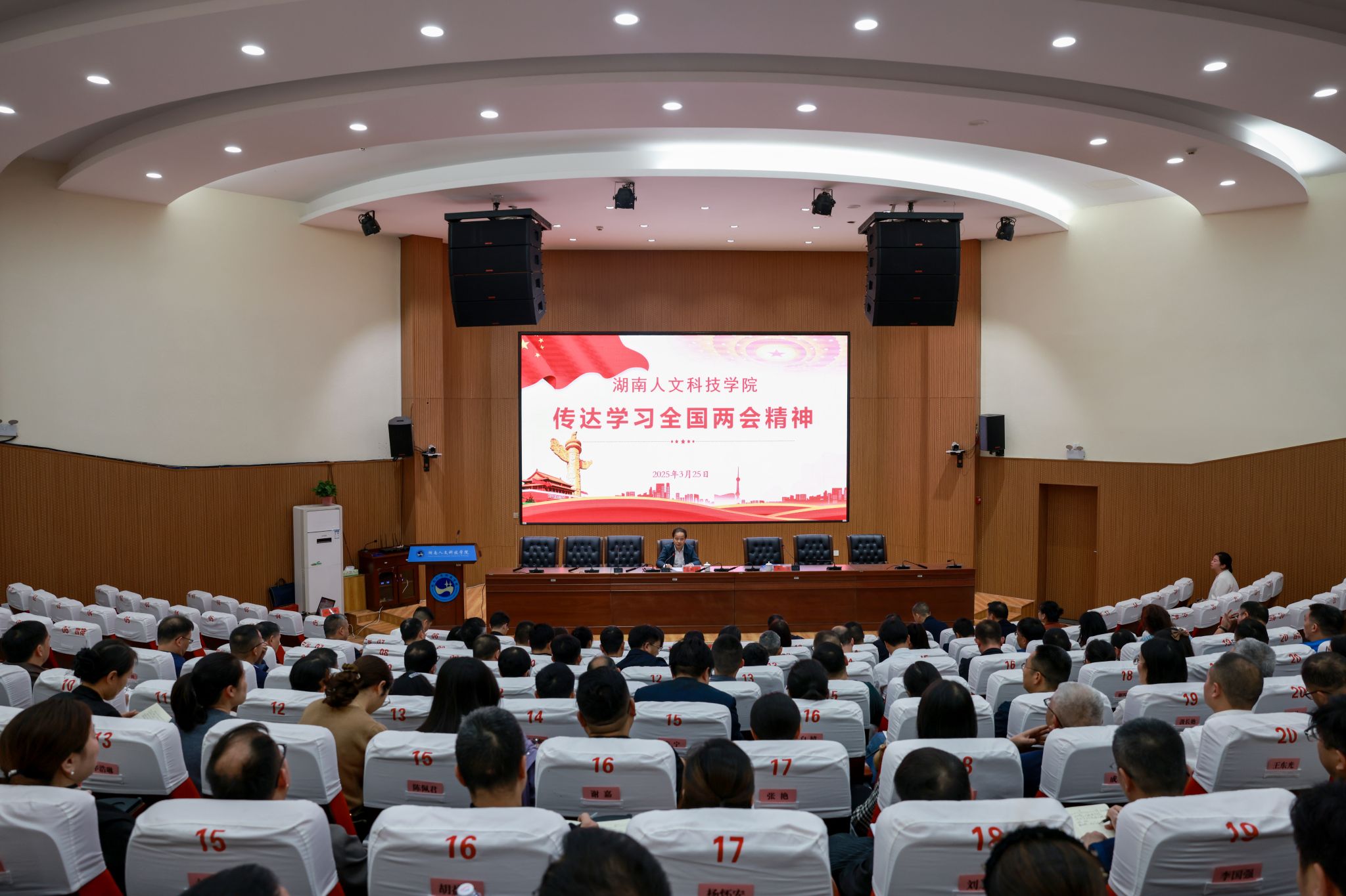 3月25日下午,学校传达学习全国两会精神会议在匠成楼报告厅召开,党委副书记、校长盛明科传达学习贯彻习近平总书记在全国两会期间的重要讲话精神和全国两会精神,党委副书记朱强主持会议。