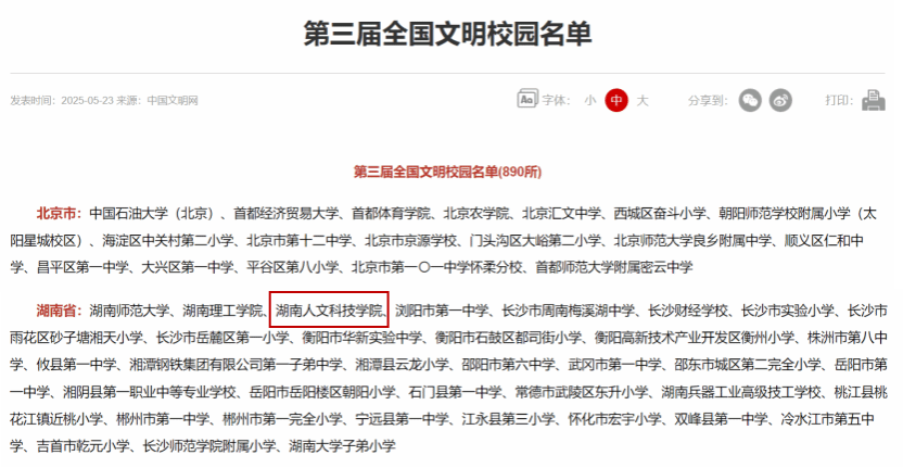 5月23日,第三届全国文明校园名单公布,中央宣传思想文化工作领导小组决定授予890所学校全国文明校园称号。KY官网在连续两届获湖南省标兵校园和创建全国文明校园先进单位的基础上,通过9年的不懈努力,久久为功,获此殊荣。