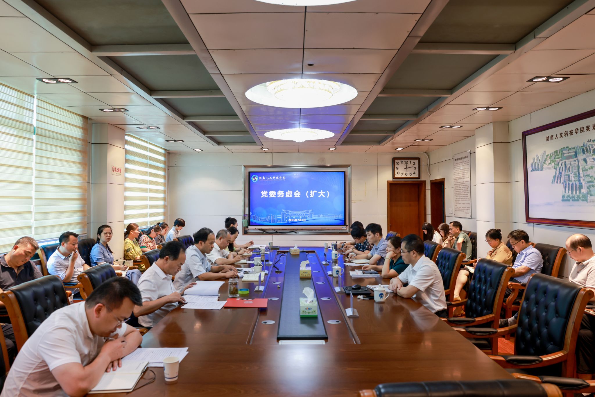 7月5日,学校党委班子集中学习暨务虚会在明德楼会议室召开。党委副书记、校长盛明科领学毛泽东的《党委会的工作方法》,主持务虚会并讲话。校领导班子全体成员参加。党政机构主要负责同志列席务虚会。