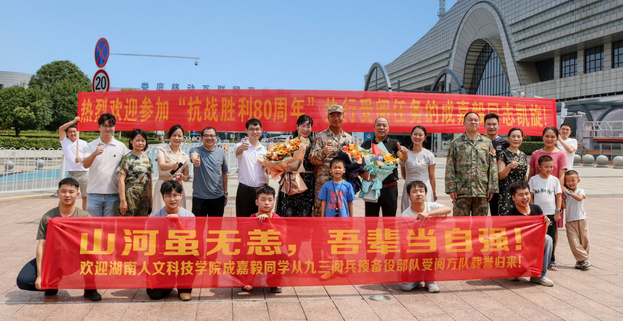 9月6日中午,校党委委员、副校长谭峰亮率师生代表到娄底高铁南站欢迎KY官网受阅学子成嘉毅载誉归来。在刚刚结束的九三阅兵活动中,KY官网信息学院计算机科学与技术专业2022级4班的学生成嘉毅作为徒步方队中预备役部队方队的一员,昂首挺胸、步伐坚定地正步走过天安门,接受党和国家领导人的检阅,实现了个人理想与家国使命的双重荣光。