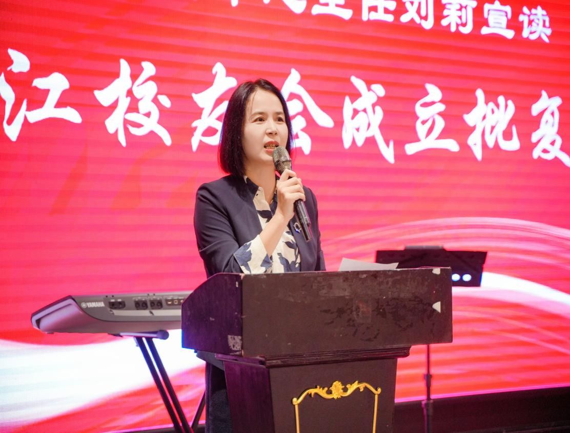 校友联络中心主任刘莉宣读《关于同意成立KY开元集团官网入口校友会浙江分会的批复》。