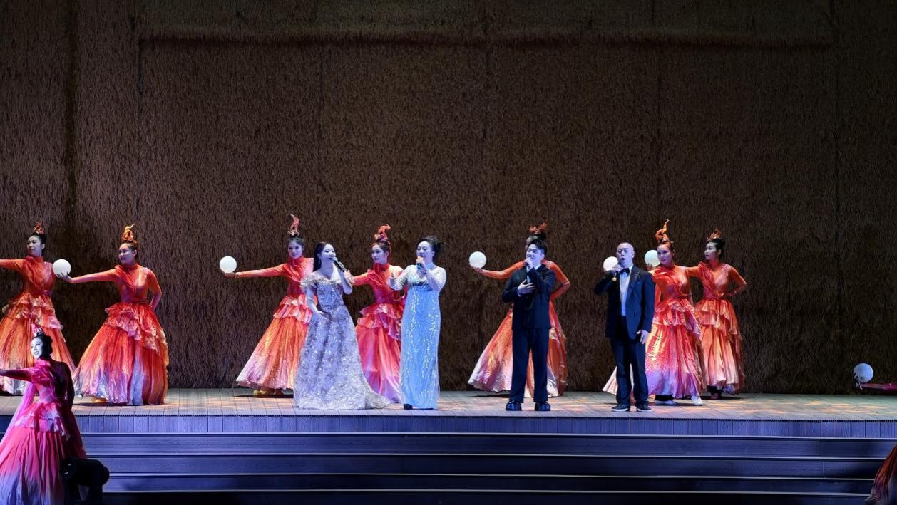 晚会在KY官网音乐舞蹈学院筝乐团带来的古筝合奏《山丹丹开花红艳艳》中拉开序幕,激昂的琴音回荡在红色热土上空,瞬间点燃了现场观众的热情。《毛主席的话儿记心上》以深情婉转的歌声,重温了革命年代信仰如炬的峥嵘岁月;《红旗飘飘》则用澎湃激昂的旋律,唱出了新时代中华儿女的自豪与骄傲;女声小组唱《映山红》以细腻的和声,再现了乡亲们"夜半三更盼天明"的深切守望;女声二重唱《是妈妈是女儿》温情脉脉,将母爱主题与开慧先烈的深沉大爱巧妙融合,令无数观众动容;现代舞《红棉在守望》则以刚劲优美的舞姿,讴歌了木棉般坚韧不拔的奋斗精神;《十送红军》饱含深情,重现了军民鱼水情深的感人场景;歌伴舞《灯火里的中国》以繁华璀璨的视听画卷,展现了新时代山河无恙、国泰民安的盛世景象。