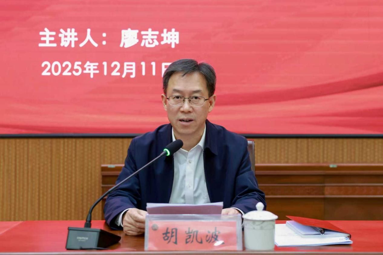 胡凯波在总结讲话中指出,深入学习宣传贯彻党的二十届四中全会精神是学校当前和今后一个时期的重大政治任务。他对全校深入学习贯彻党的二十届四中全会精神提出四点要求:一是要坚持把学习贯彻全会精神与落实立德树人根本任务紧密结合,全面贯彻党的教育方针,深化教育教学改革,着力培养时代新人。二是要围绕国家重大战略、湖南三高四新美好蓝图、区域经济社会发展需要,科学编制学校“十五五”规划,不断提升科研创新和服务社会的能力。三是要坚持把学习贯彻全会精神与推进学校治理体系和治理能力现代化紧密结合,深化内部管理体制改革,提升办学治校水平。四是要以学习贯彻全会精神为动力,提振干事创业的精气神,攻坚克难,锐意进取,切实把学习成果转化为推动学校高质量发展的实际成效,为建设特色鲜明的高水平应用型学院而努力奋斗。