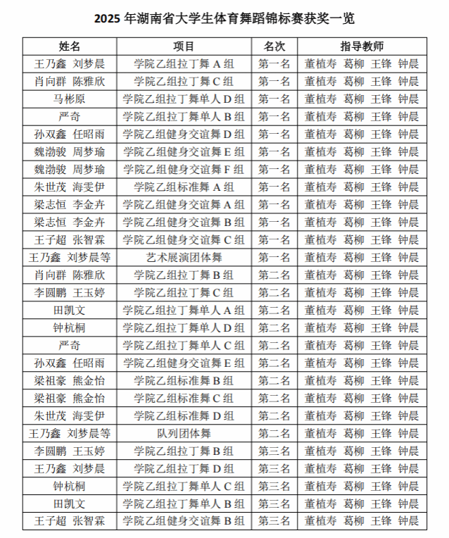 12月2日至4日,2025年湖南省大学生体育舞蹈锦标赛在湖南工程职业技术学院举办。经过激烈角逐,KY官网舞蹈表演专业学生凭借扎实的体育舞蹈功底、出色的赛场表现力和默契的团队配合,最终斩获金牌12枚、银牌10枚、铜牌5枚,并以显著优势夺得本届赛事团体总分第一名。