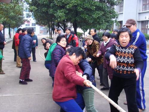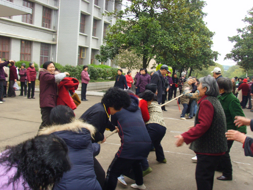 三月八日,学院离退休女教职工欢聚在学院,用拔河比赛的形式来庆祝妇女自己的节日,她们虽然年龄比较大,但争强好胜的劲头不减当年,体弱不能参加的比赛的,就当一名合格的拉拉队员,比赛场内大家开心的笑声、庆贺胜利的掌声、鼓劲的加油声此起彼伏,其中还夹杂着久别重逢的相互问候。参赛的同志们都是铆足了劲,互不相让,七个参赛队经过三轮七次比赛,第四联络组一队夺得冠军。第一联络组二队、一队、第三联络组二队分获二、三名。