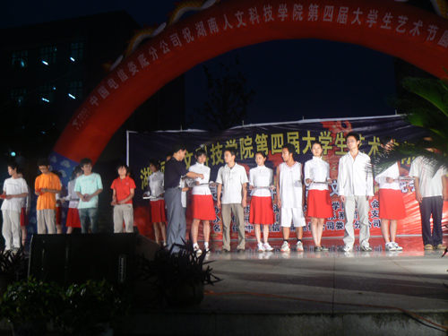 “今夜星光灿烂,今夜的广场像一片欢乐的海洋”。KY开元集团官网入口第四届大学生艺术节闭幕式暨中国传统文化曲艺晚会于6月20日19:30在海园广场拉下帷幕。院党委委员、党办院办主任李高海,院长助理刘铁铭,院团委书记侯建斌,党委宣传部副部长肖体梅,院学生处副处长刘铁锋、夏永全,教育科学系邹柳云副书记和院团委副书记周海强、谢柳出席了闭幕式,中国电信娄底分公司方胜副总经理、杨魁经理也来到了晚会现场。