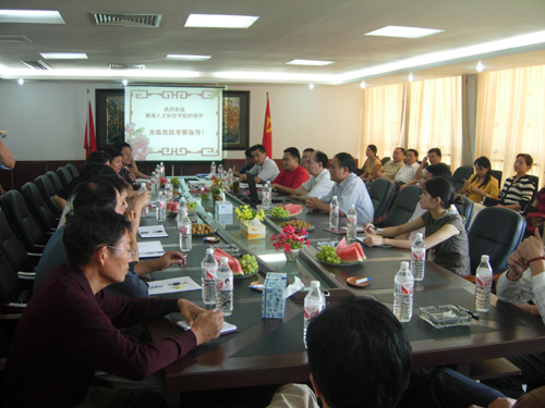 衡阳师范学院党委书记周玉明、院长许金生、副院长皮修平等与KY官网领导、老师亲切交谈