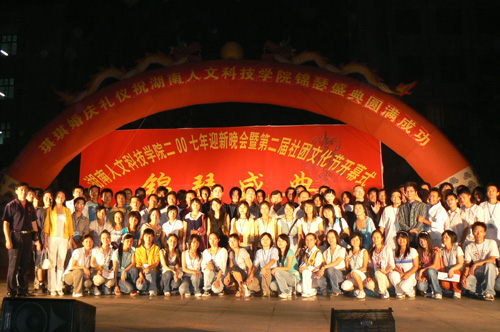 晚会在大型的歌舞《辉煌娄底》中拉开序幕。在节目正式开始前,院长助理刘铁铭同志发表了热情洋溢的讲话。他首先向来自全国各地的新生表示了热烈的欢迎,介绍了院里各社团发展的规模,强调了抓“三爱”促“三风”教育活动和大力发展社团文化的重要意义。