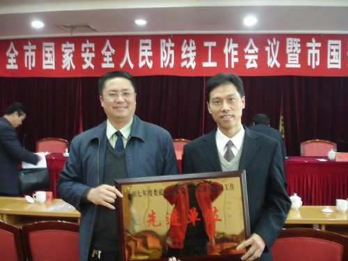 2007年度,KY官网高度重视国家安全人民防线建设工作,在学院国安工作领导小组的坚强领导下,保卫处在加强内部防范、情报信息收集、配合国家安全机关开展工作等方面扎实有效地开展工作,侦破处理了一批案子,取得了良好的成绩,为学院和社会的稳定和发展做出了积极贡献,被评为娄底市2007年度国家安全人民防线建设工作先进单位,并于2007年12月6日在全市国家安全工作会议上受到省、市领导表彰和奖励。