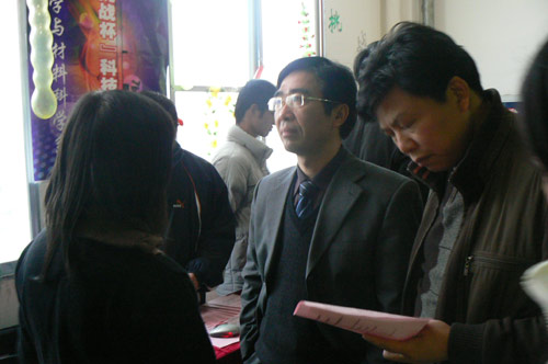 姜正国院长在通控系、计算机系、化学系、政法系展区前驻足良久,饶有兴趣的听取了《红外蓝牙防走失器》、《酒店门控系统》、《数字图像中的多重多目水印技术》、《新型除草剂》等项目负责人介绍,姜院长鼓励队员们进一步完善作品,争取在2008的全省挑战杯大赛中取得佳绩。