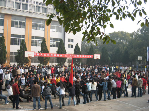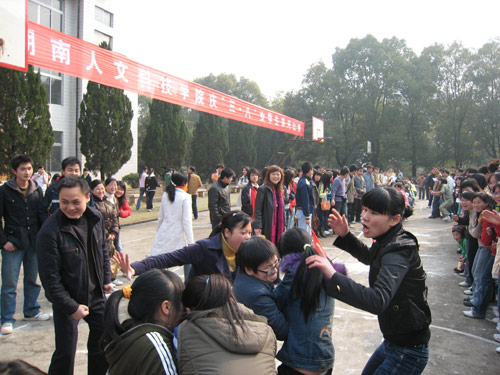3月8日上午,由学工处和院体委共同组织主办的庆祝“三·八妇女节”女生拔河比赛于图书馆南面篮球场隆重举行。