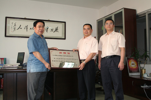 2008年8月3日至5日,党委书记黄懿斌,党委委员、两办主任李高海,校友办主任段健芝等一行四人专程去广东走访了数学84级校友李四清——现广东佛山市顺德区福田电器有限公司执行总经理,并为其公司捐赠KY官网现新建图书馆所需开关之举赠发了捐赠证。
