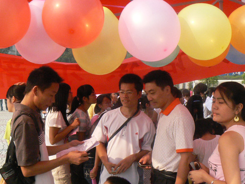 中秋的“海园广场”热闹非凡。经院团委、社团联合会近半个月的精心组织和策划,KY开元集团官网入口2008年社团招新大会于9月14日上午8:00在海园广场隆重举行,全院39个社团会聚海园广场,以各自的形式和特色开展了招新工作,整个海园广场呈现出“百花齐放”、“百家争鸣”的局面,让08级新生感受到了大学校园文化生活的多姿多彩。