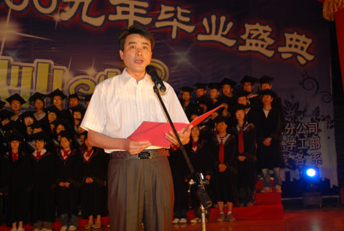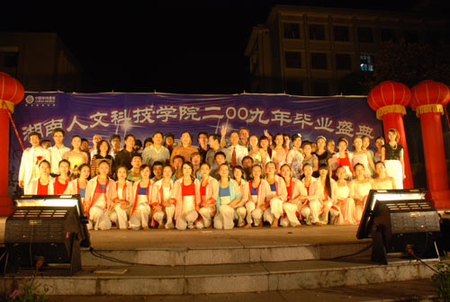 2009年6月3日晚,校海园广场华灯闪烁,歌舞翩跹,"相约灿烂" 2009届毕业晚会隆重举行,学校党委书记姜正国教授、学院党委副书记、院长柏连阳教授等校领导,中国移动通信娄底分公司、潇湘职业学院和娄底市职业技术学院等单位相关领导应邀出席了晚会。