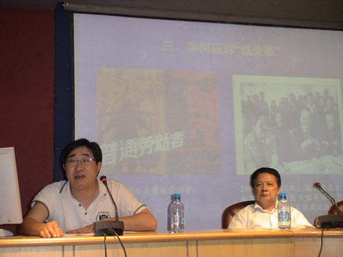 报告会上,陈教授结合当前大学生就业实际,从社会学的角度介绍了当前大学生就业形势的背景,分析了大学生就业难问题的原因,重点解答了如何应对就业难问题的对策。报告结束后,陈教授耐心细致地回答了市场营销专业和旅游管理专业学生提出的有关具体就业方向及在校考研等问题。