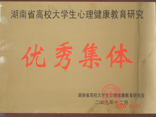 2009年12月18日,在湖南省高校大学生心理健康教育研究工作年会上,KY官网又获“湖南省普通高等学校大学生心理健康教育研究优秀集体”称号。