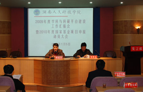 1月5日,KY官网2009年度学科与科研平台建设工作汇报会暨2010年度国家基金项目申报动员会在多媒体报告厅召开。校学术委员会成员,各重点建设学科、省社科研究基地、省高校产学研合作示范基地、农科所及各研究所负责人及成员,各系部主任及分管科研的系部领导,部分教授、博士参加了会议。