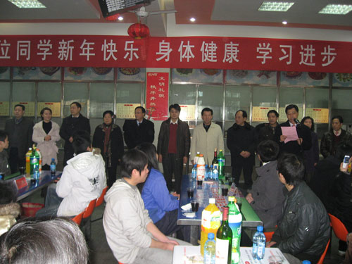 中午,校领导与全体留校学生在学校一食堂欢聚一堂,共度新春佳节,近300名师生参加了这次活动。活动由副校长刘铁铭主持,党委书记姜正国发表了热情洋溢的新春致辞。现场许多同学纷纷给家里打电话,把在学校师生们一起过年的开心、热闹场景和领导的关心告诉了父母,让家人放心。