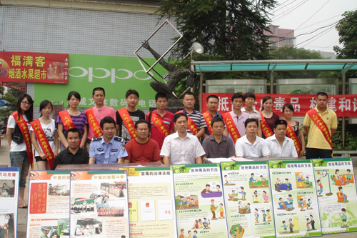 6月26日是第23个国际禁毒日。大科办事处、大科派出所、大科居委会、校保卫处领导、干警、工作人员和KY官网学生禁毒志愿者30余人在娄星广场和KY官网大门口参加了禁毒宣传活动。此次活动向娄底市民和KY官网师生发放了3000多份禁毒宣传资料并回答了咨询者的多种问题。学校副校长刘铁铭教授亲临活动现场指导,活动开展得有声有色,达到了预期的目的。