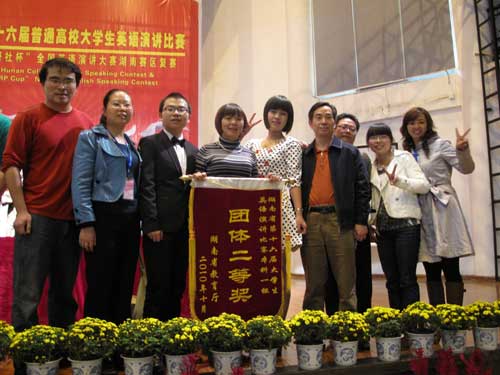 10月16日,由省教育厅主办的湖南省第十六届普通高校大学生英语演讲比赛暨首届“外研社杯”全国英语演讲比赛湖南区复赛在湖南涉外经济学院落下帷幕。在本科一组的比赛中,共有29个一本和二本学校参与了角逐,KY官网外语系选手李娅同学获得英语专业组一等奖,中文系选手曾骏同学获得非英语专业组一等奖,并以总分第五的好成绩获得本科一组团体二等奖。
