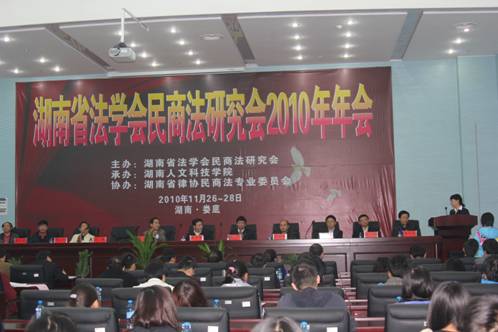 11月26日至28日,湖南省法学会民商法研究会2010年年会在KY官网新图书馆第二会议室隆重召开,本次会议由KY官网承办,湖南省律师协会民商法专业委员会协办。湖南省高级人民法院副院长李微、娄底市委常委、市政法委书记、市法学会会长易春阳、湖南省法学会秘书长周小华等领导出席了开幕式,