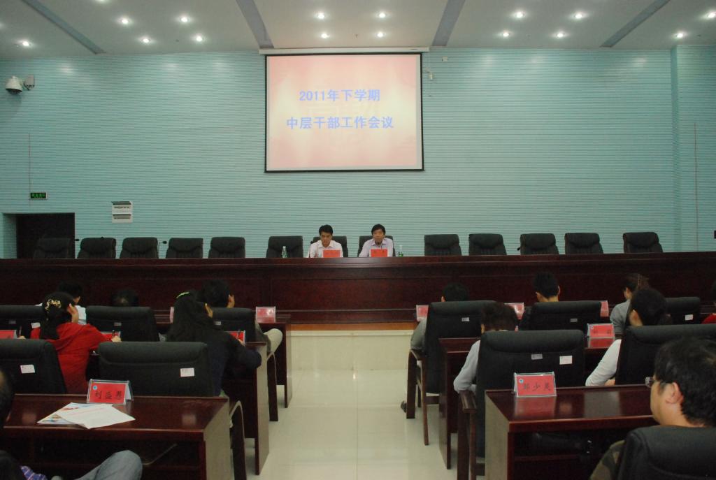 10月11日下午,学校在图书馆会议室召开中层干部会议,郭军校长作工作报告,柏连阳书记主持会议。