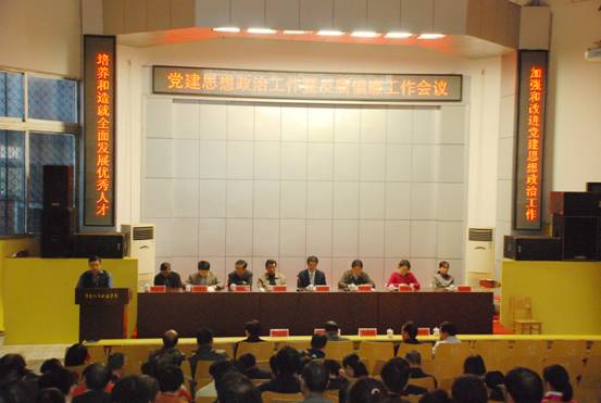 校党委书记柏连阳作了《凝心聚力,改革创新,开创KY官网党建和思想政治工作新局面》的工作报告。他指出,全校党员干部要深化认识,切实增强党建与思想政治工作的责任感和使命感,加强党建与思想政治工作是落实十七届六中全会精神、践行“三个代表”、推进我省“四化两型”建设、维护高校和谐稳定、实现KY官网科学发展的迫切需要。总结KY官网党建与思想政治工作取得的成绩时,柏书记指出,过去一年,创先争优活动扎实推进,党的思想建设、组织建设不断创新加强,党管干部和人才工作进一步加强,大学生思想政治工作得到改进,反腐倡廉工作明显成效,党建带动其他工作全面发展。柏书记号召大家凝心聚力,用改革创新精神推进党建与思想政治工作:深入开展为民服务创先争优活动,加强领导班子建设,加强干部和人才队伍建设,深化基层党组织建设,抓好安全稳定工作,加强大学生思想政治工作,推进党风廉政建设和反腐败工作。