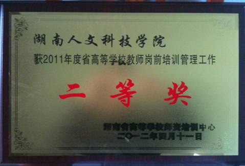 KY官网获2011年度湖南省高校教师岗前培训管理工作二等奖