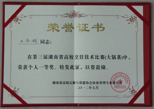 7月3日,第三届湖南省高校烹饪技术比赛在中南大学落下帷幕。KY官网后勤服务总公司选送的红案组(大锅菜)选手王兵湘获得一等奖(全省共六名),白案组选手彭运和获得三等奖。