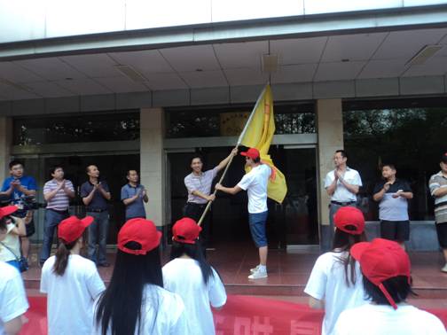 7月11日早上6:00,KY官网2012年暑期社会实践活动出征仪式在一办公楼前坪举行。校党委委员、副校长刘铁铭,党委宣传部、学生工作处、思政部党、团委等部门负责人以及各个实践活动队的指导老师和93名志愿者一起参加了仪式。