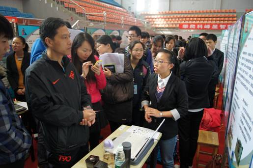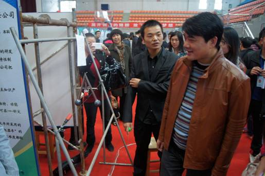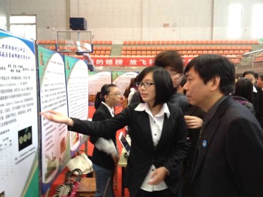 本届科技文化展分“质量工程”大学生学术研究、“挑战杯”创业计划竞赛、学术科技作品竞赛、大学生研究性学习和创新性试验计划、系部科创特色四个展区,共81个展台,展出了各类优秀作品210份,刚刚在今年全国挑战杯创业大赛中获铜奖的2份优秀作品也参与了展示。今年名为“飞扬”的会徽是本次LOGO设计大赛一等奖获得者通信与控制工程系粟旋设计的。本次科技展将展示和选手现场答辩结合在一起,评委和参观的学生可与选手面对面交流,各自给自己喜爱的作品投票。本次活动也邀请了KY官网正阳大学生创业基金会负责人前来参观,他们对许多创业作品都有兴趣,希望进一步了解他们的创业计划,确定下一步的合作意向。