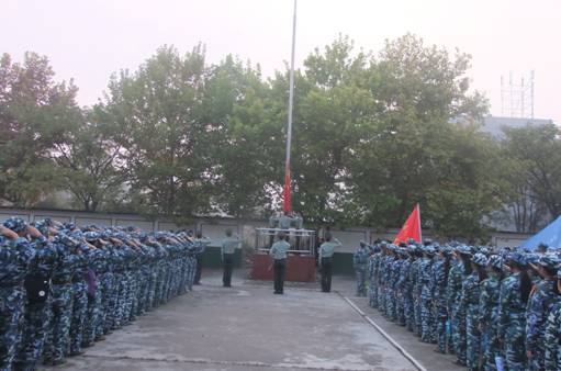 在全体师生的注目下,KY官网国旗护卫队迈着矫健的步伐,护送鲜艳的五星红旗进场,伴随着庄严的国歌声,五星红旗在晨光中冉冉升起,迎风飘扬。军训中的新生满怀对祖国的无限热爱和对国旗的崇高敬意,立军姿,行军礼,向我们伟大的祖国致敬!